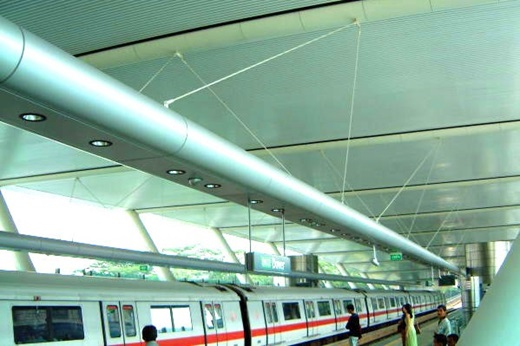 Abgehängte ORIGINAL DOBNER Aluminium-Paneeldecke in einer Metro-Hochbahn-Station